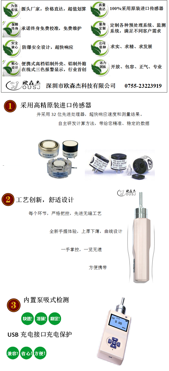 系列智能便攜式固態電化學一氧化碳檢測儀,是歐森杰公司在OS5-CO-SS的基礎上新開發的一款連續檢測一氧化碳氣體濃度的本質安全型設備。相比液態電化學傳感器具有超強的抗過載能力,可在高濕度環境下長時間使用,并且具有出色的穩定性及重復性。專用于檢測工作場所、倉庫儲罐、生產線、尾氣排放等場所的一氧化碳氣體濃度,能夠快速準確檢測出一氧化碳濃度值。(便攜式固態電化學一氧化碳檢測儀)